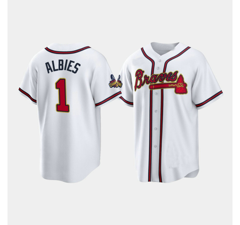 - #1 Ozzie Albies Braves Men's Replica 2022 Gold Program Jersey - White