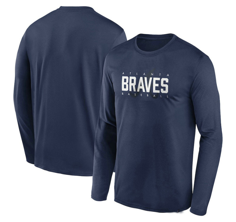 - Adult Men's Braves Authentic Collection Team Logo Legend Performance Long Sleeve baseball T - shirt - Navy