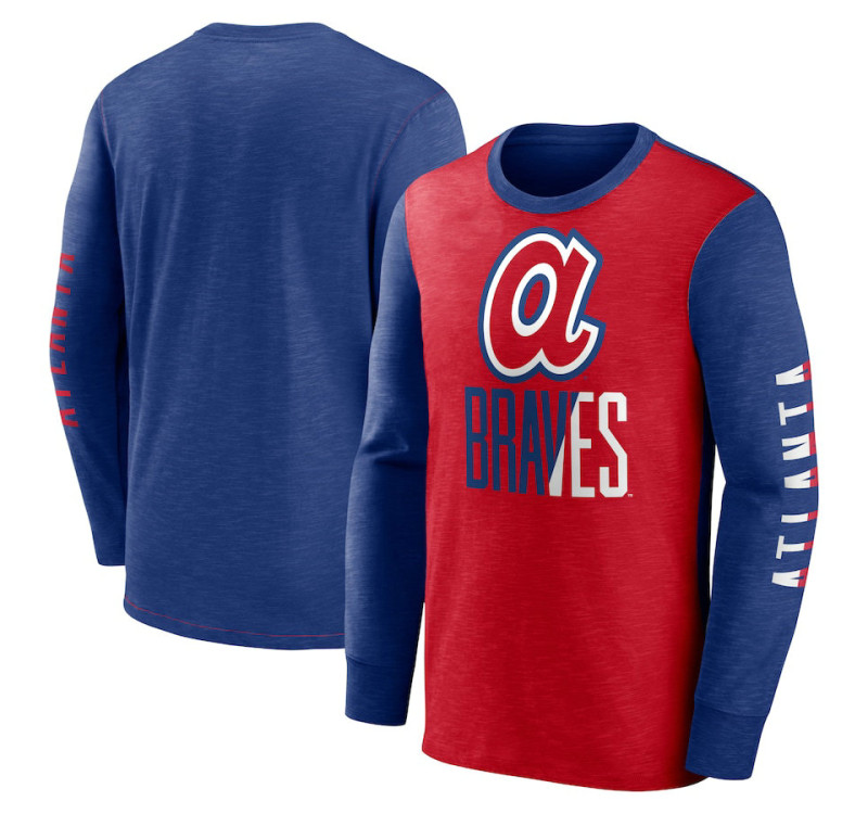 Men's Atlanta Braves Cooperstown Collection Rewind Splitter Slub Long Sleeve baseball T-shirt - Royal/Red