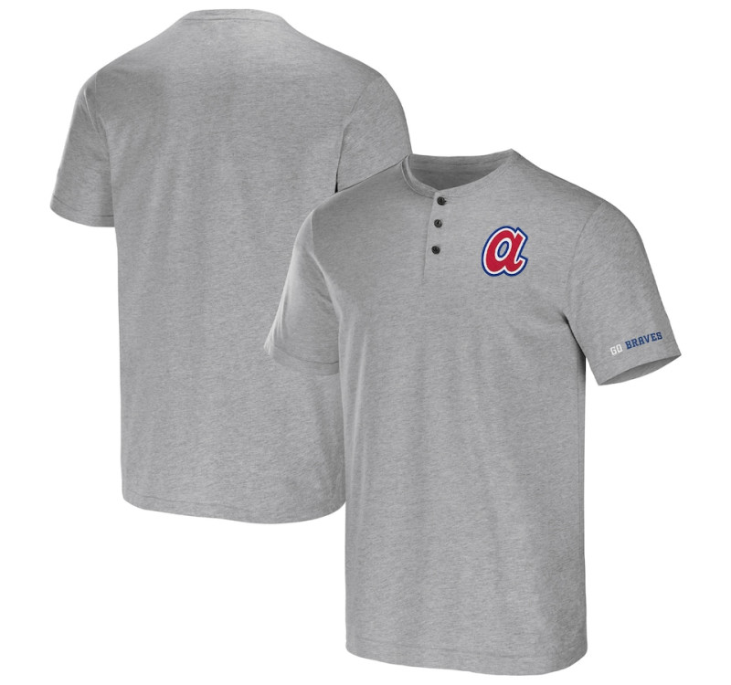 - Adult Men's Braves Darius Rucker Collection Henley baseball T - shirt - Heather Gray