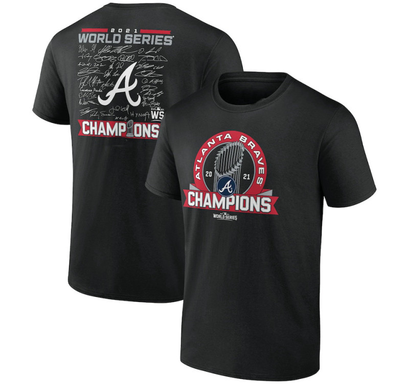 - Adult Men's Braves Baseball 2021 World Series Champions Signature Roster baseball T - shirt - Black