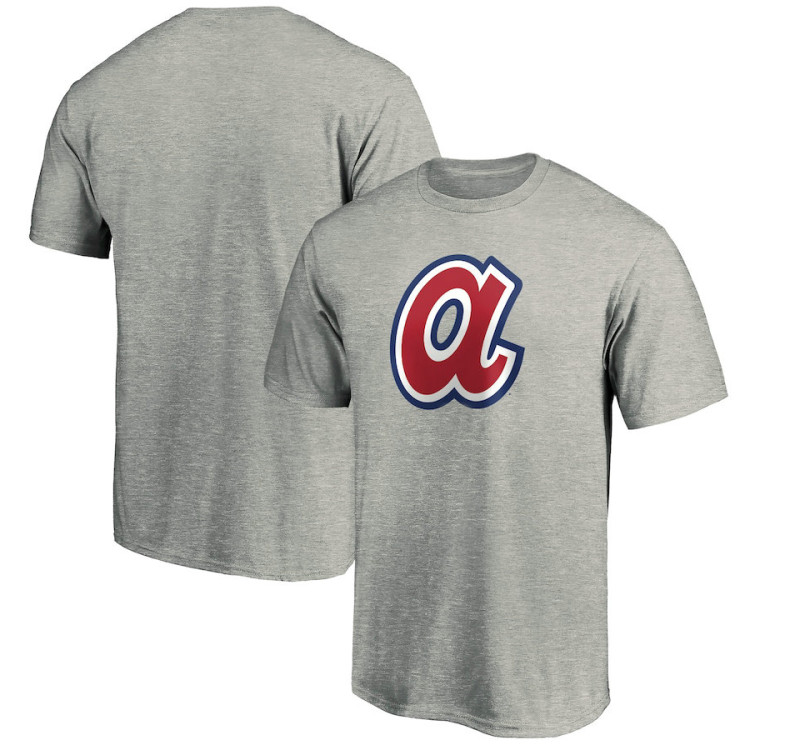 - Adult Men's Braves Baseball Cooperstown Collection Huntington Logo baseball T - shirt - Heathered Gray