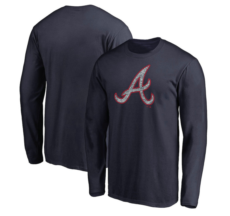 Men's Atlanta Braves Baseball Static Logo Long Sleeve baseball T-shirt - Navy