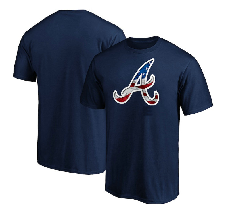 - Adult Men's Braves Baseball Team Banner Wave baseball T - shirt - Navy
