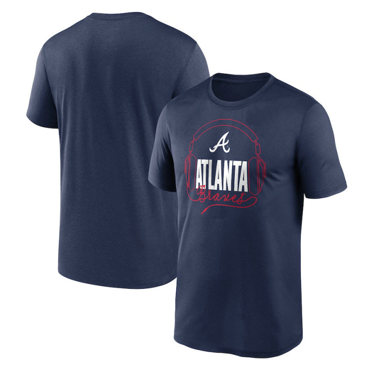 - Adult Men's Braves Headphones Hometown Legend Performance baseball T - shirt - Navy