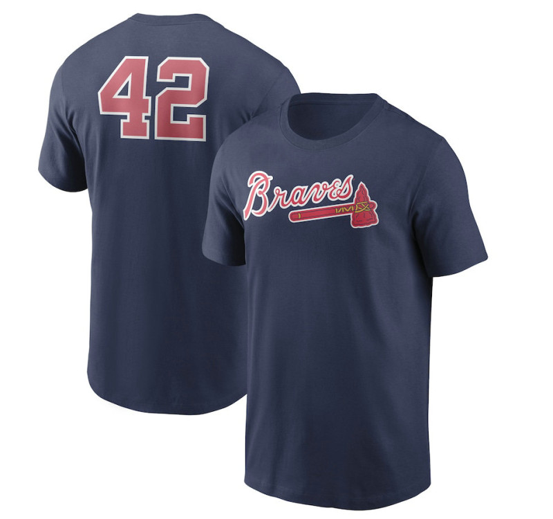 - Adult Men's Braves Jackie Robinson Day Team 42 baseball T - shirt - Navy