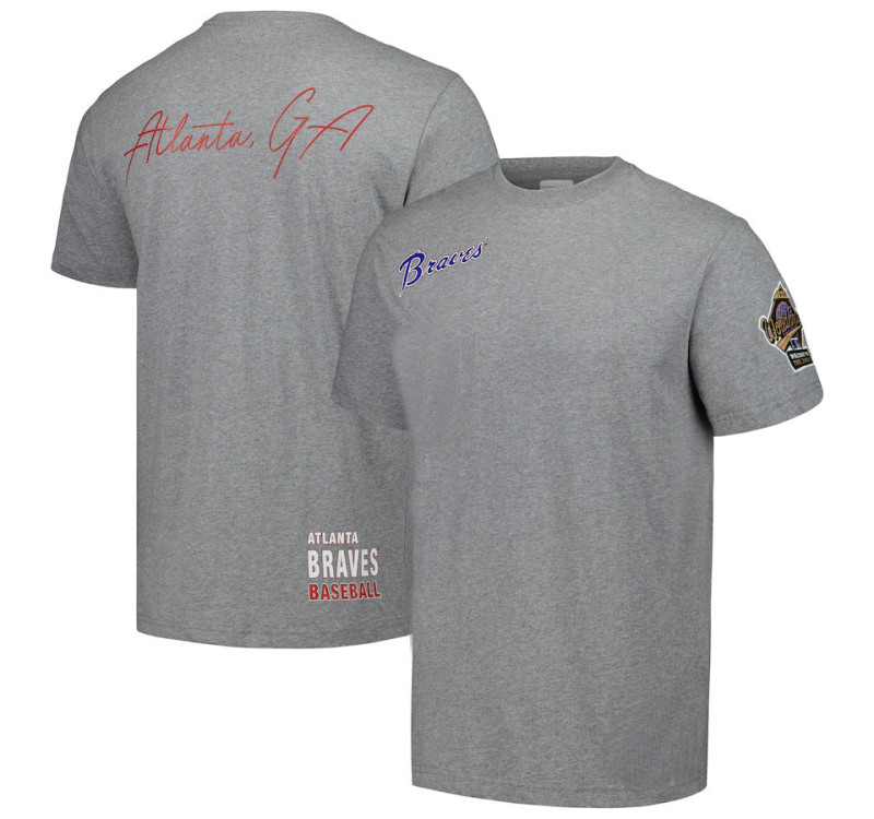 - Adult Men's Braves Mitchell & Ness Cooperstown Collection City Collection baseball T - shirt - Heather Gray
