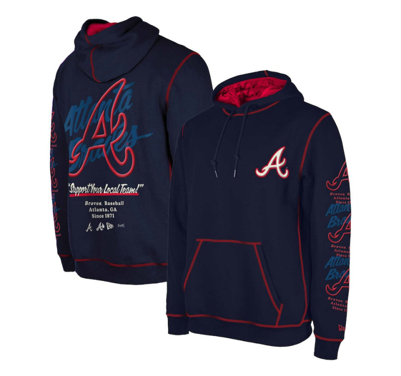 - Adult Men's Braves New Era Team Split Pullover baseball Hoodie - Navy