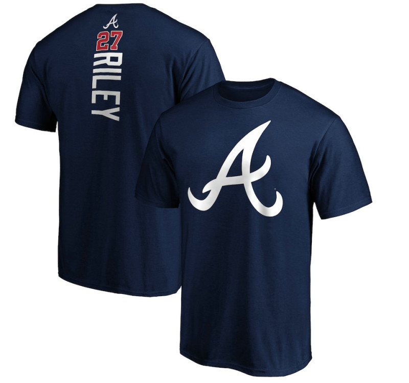 - Adult Men's Austin Riley Braves Baseball Playmaker Name & Number baseball T - shirt - Navy