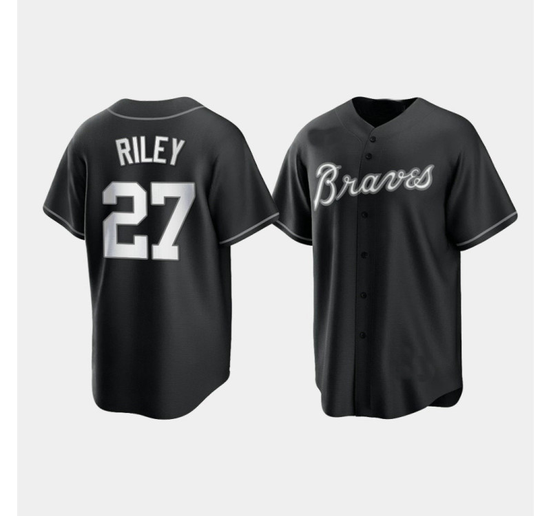 - Braves Austin Riley Black White 2021 All Black Fashion Replica Jersey