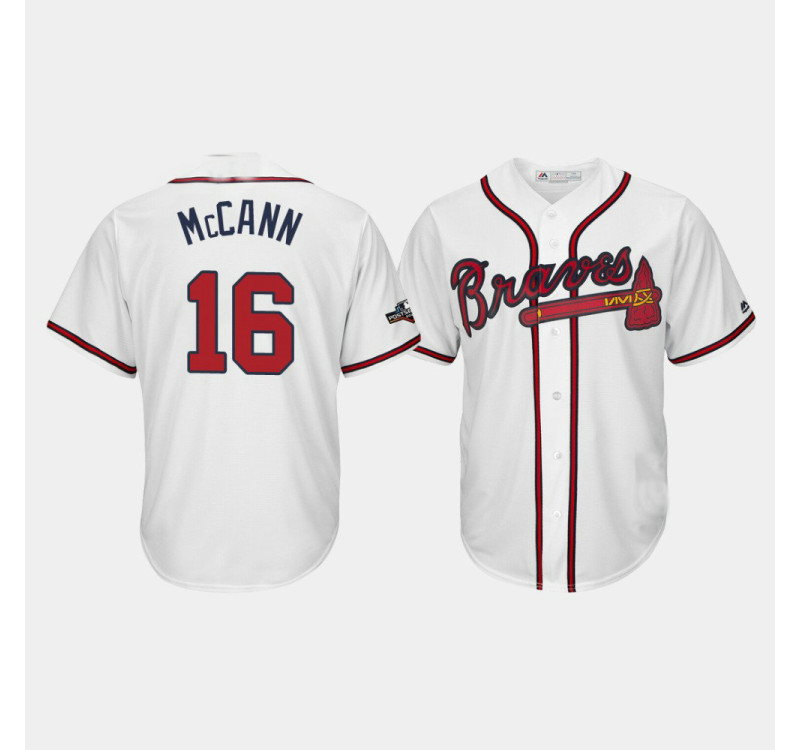- Braves Men's #16 Brian McCann 2019 Postseason White Official Cool Base Jersey