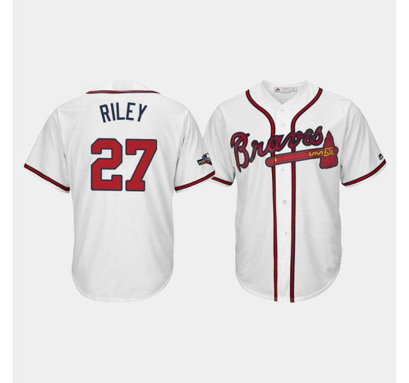 - Braves Men's #27 Austin Riley 2019 Postseason White Official Cool Base Jersey