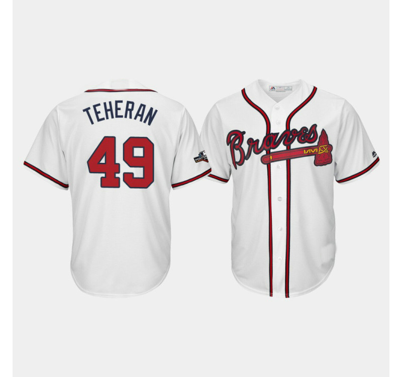 - Braves Men's #49 Julio Teheran 2019 Postseason White Official Cool Base Jersey