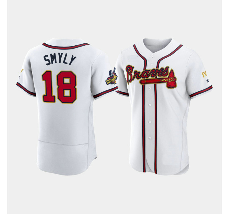 • Atlanta Braves Drew Smyly Men's White Authentic 2022 Gold Program Jersey