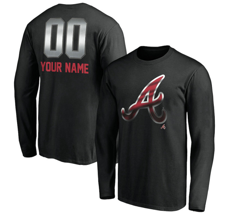 Customize Men's Atlanta Braves Baseball Midnight Mascot Long Sleeve baseball T-shirt - Black