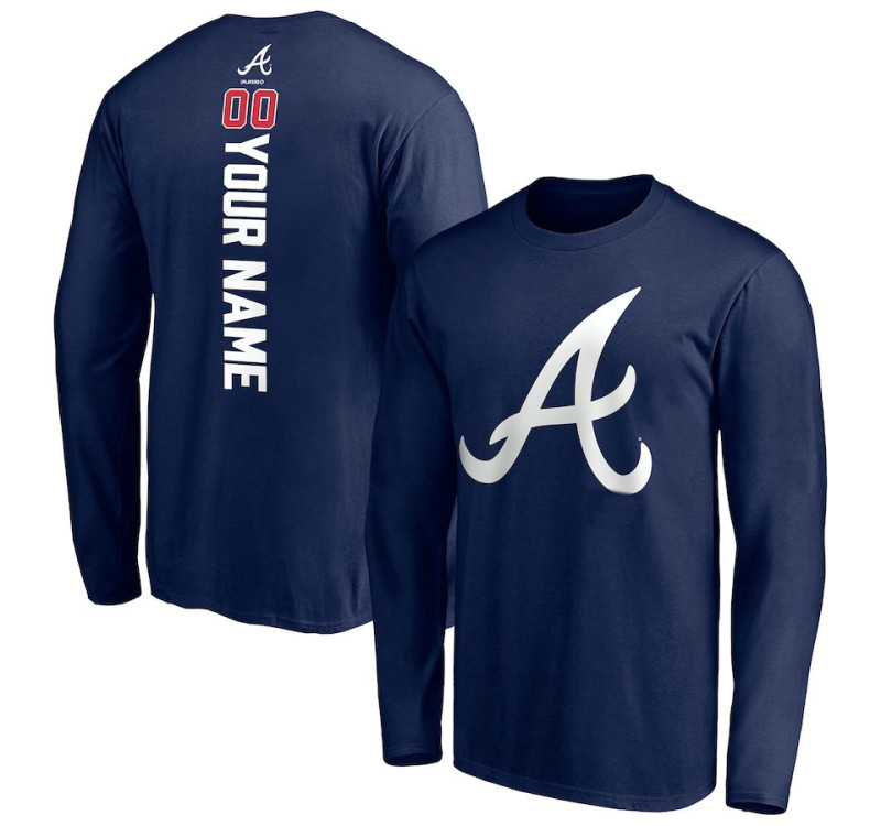 - Customize Men's Braves Baseball Playmaker Name & Number Long Sleeve baseball T - shirt - Navy