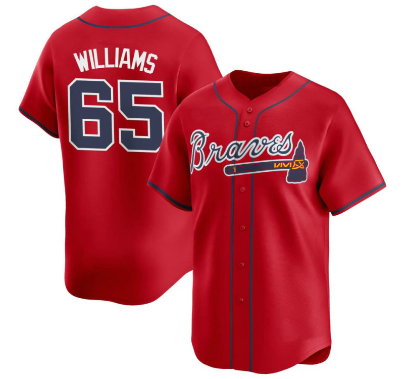 - Luke Williams #65 Braves Alternate Jersey – Red Limited