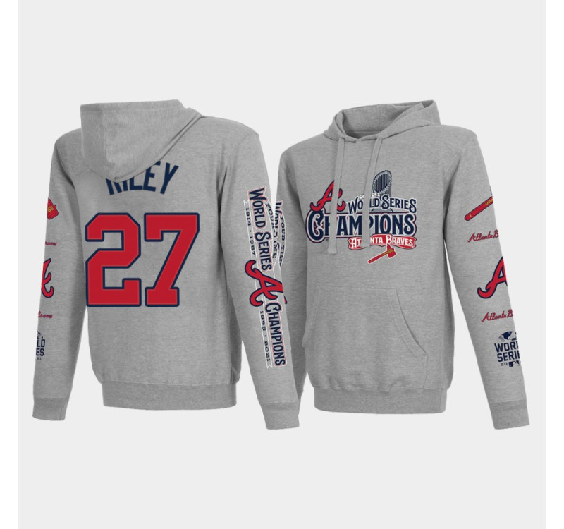 - Braves 27 Austin Riley 2021 World Series Champions Gray Pullover Hoodie