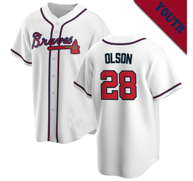 - Matt Olson #28 Braves Kid's Home Jersey - White Replica