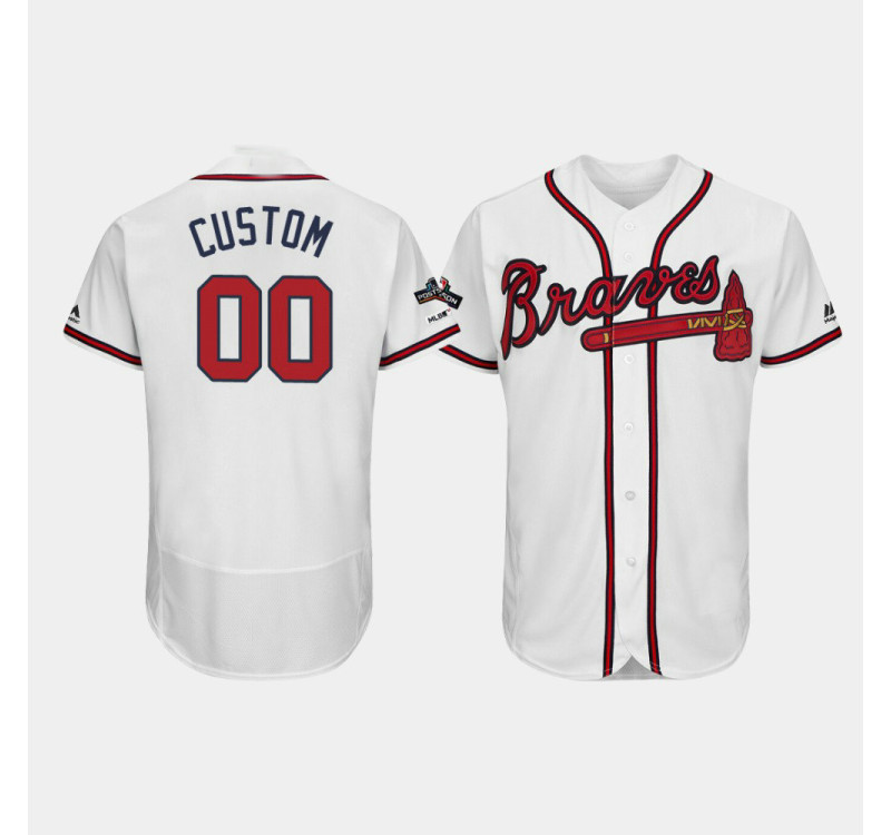 - Men's Braves #00 Custom White 2019 Postseason Authentic Flex Base Jersey