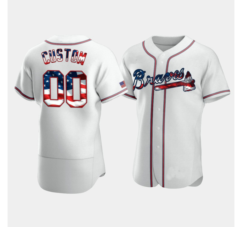 - Men's Braves #00 Custom White 4th of July 2020 Stars & Stripes Jersey
