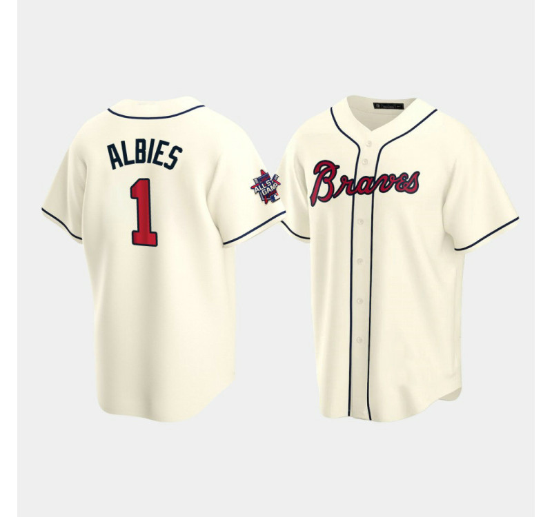 - Men's Braves #1 Ozzie Albies Cream 2021 All - Star Game Replica Jersey