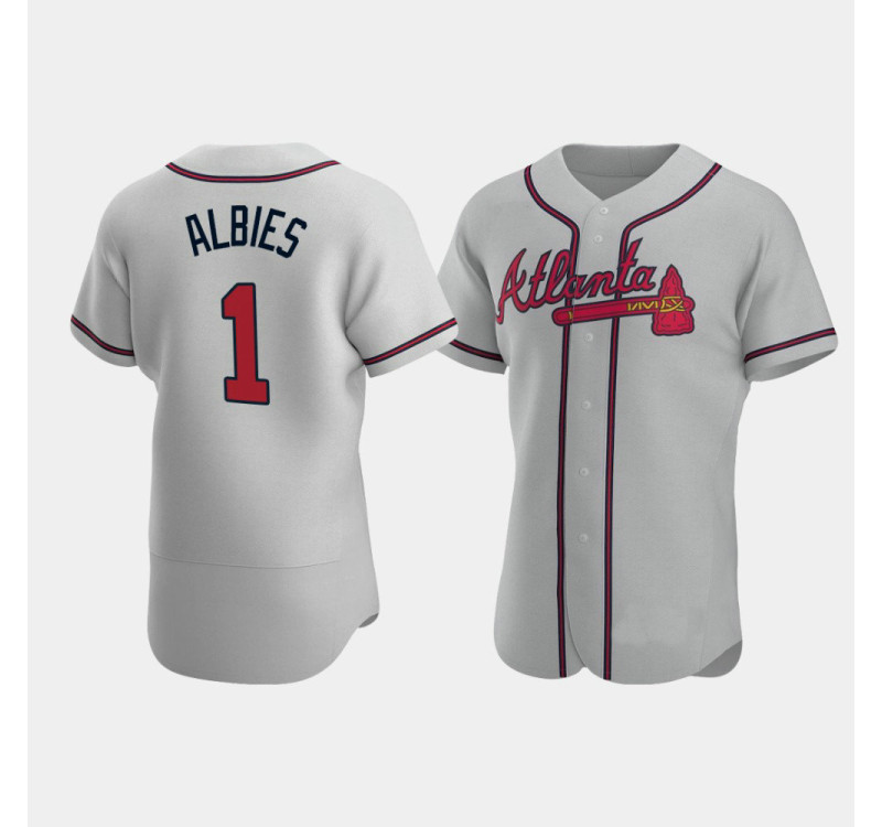 - Men's Braves #1 Ozzie Albies Gray Authentic 2020 Road Jersey