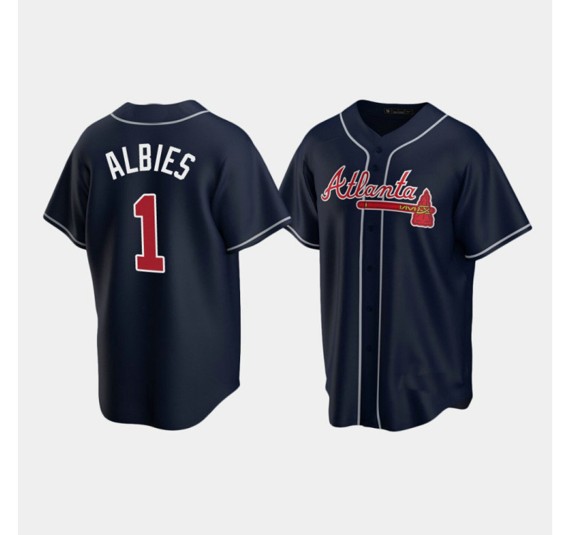 - Men's Braves #1 Ozzie Albies Navy 2020 Replica Alternate Jersey
