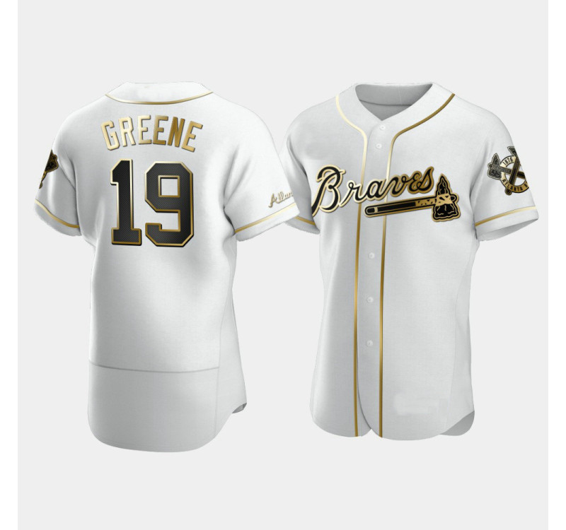 • Men's Braves #19 Shane Greene White Golden Edition Authentic Jersey