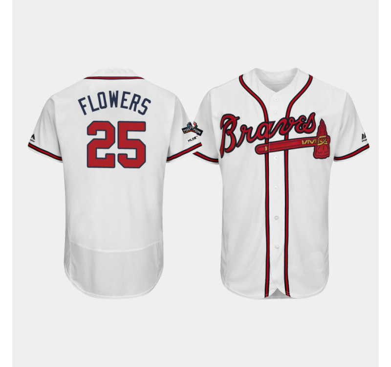 - Men's Braves #25 Tyler Flowers White 2019 Postseason Authentic Flex Base Jersey