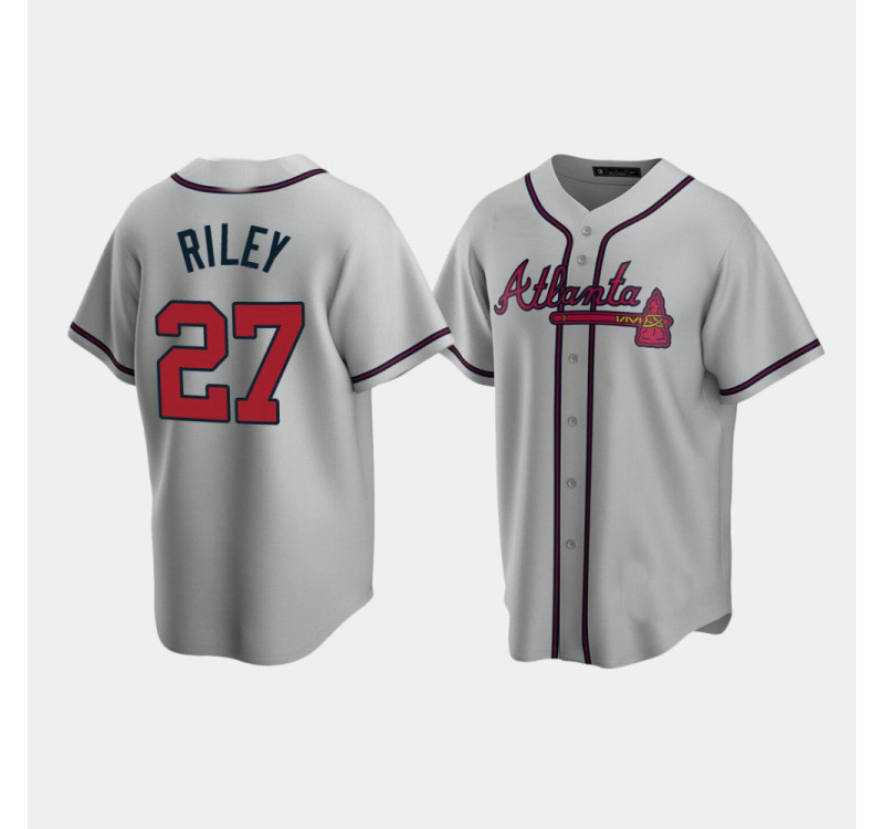 - Men's Braves #27 Austin Riley Gray 2020 Replica Road Jersey