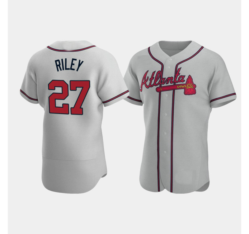 - Men's Braves #27 Austin Riley Gray Authentic 2020 Road Jersey