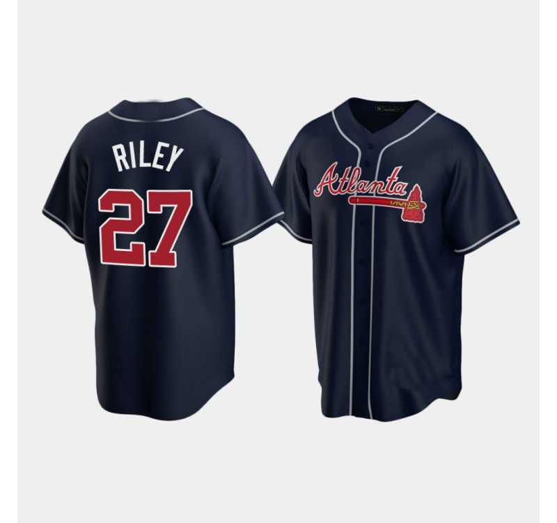 - Men's Braves #27 Austin Riley Navy 2020 Replica Alternate Jersey