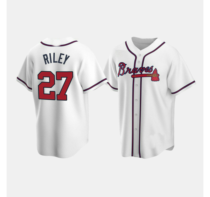 - Men's Braves #27 Austin Riley White 2020 Replica HomeJersey