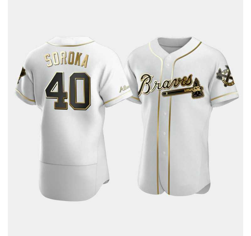 - Men's Braves #40 Mike Soroka White Golden Edition Authentic Jersey