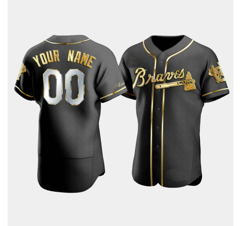 • Men's Atlanta Braves Custom #00 Black Gold Edition Authentic Jersey
