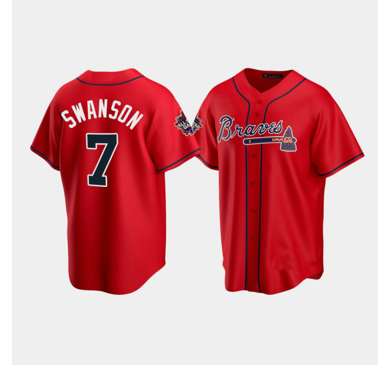 - Men's Braves Dansby Swanson Red 2021 All - Star Replica Game Patch Jersey