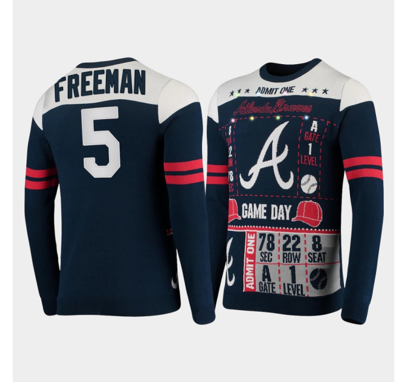 - Men's Braves Freddie Freeman Navy 2021 Ugly Light - Up Sweater