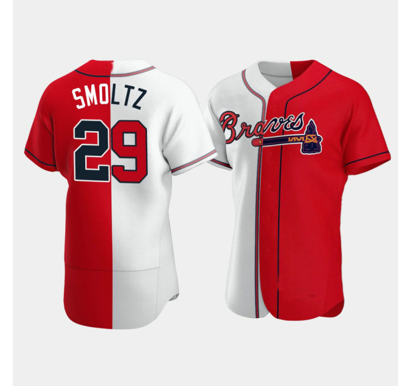 - Men's Braves John Smoltz #29 White Red Split Authentic Jersey