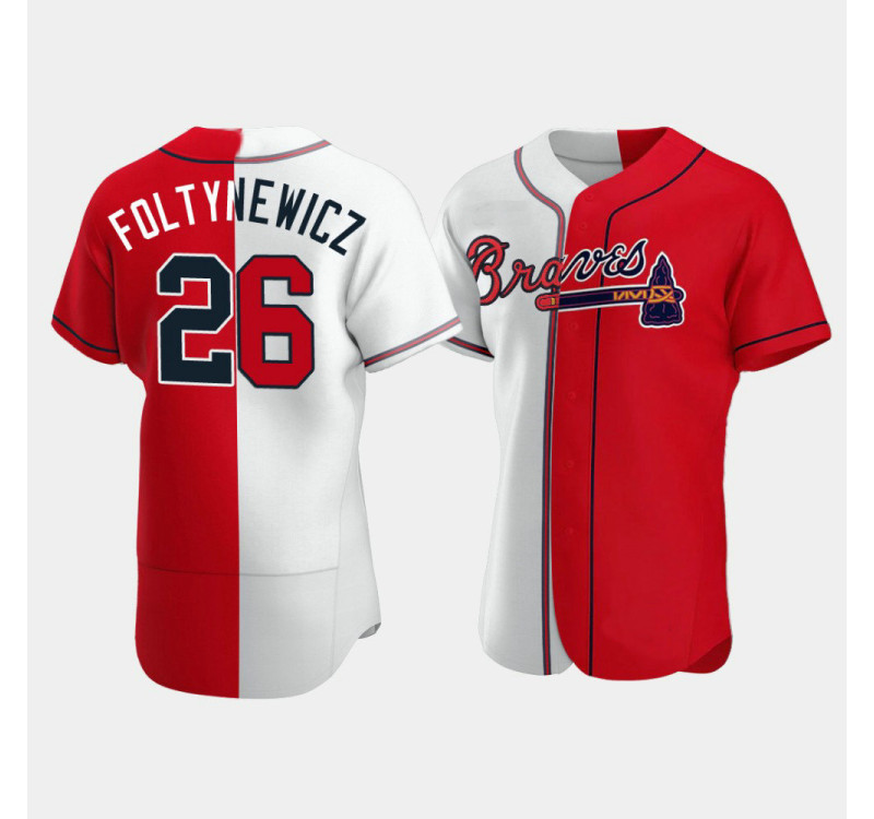 • Men's Atlanta Braves Mike Foltynewicz #26 White Red Split Authentic Jersey