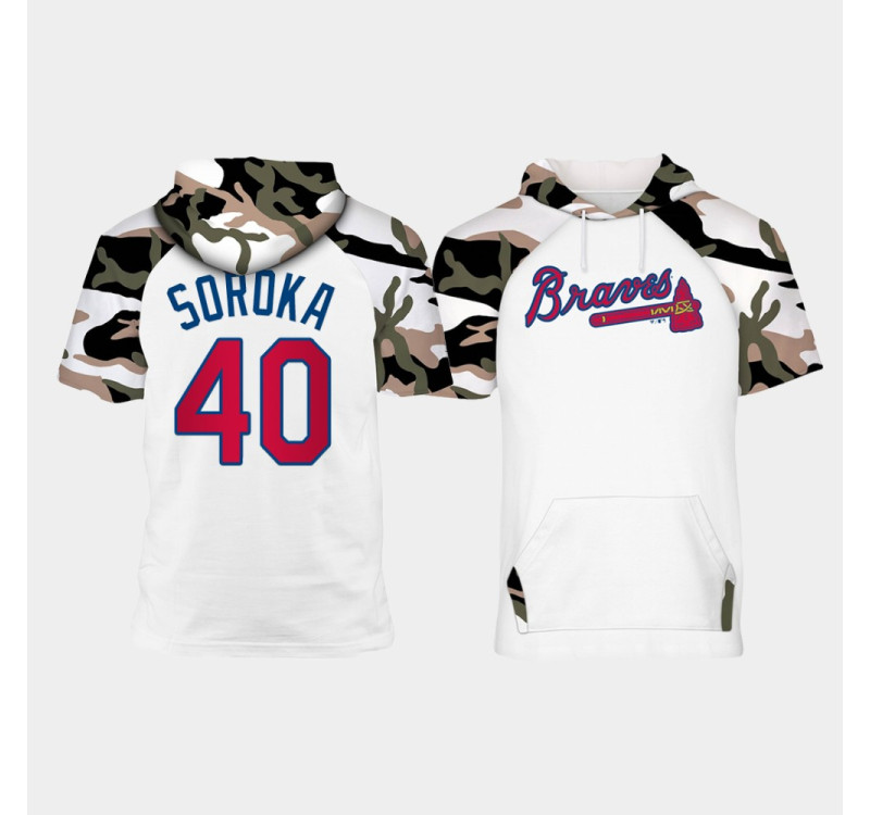 - Men's Braves Mike Soroka #40 2021 Memorial Day White Camo Raglan Hoodie