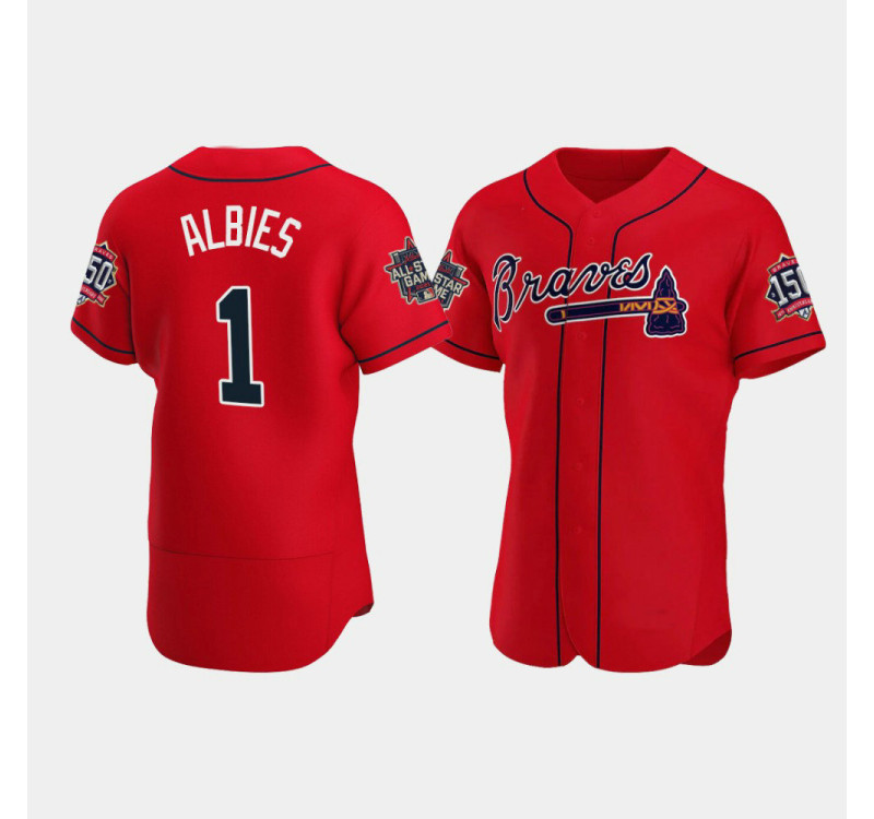 - Men's Braves Ozzie Albies Red 2021 All - Star Authentic Alternate Game Patch Jersey