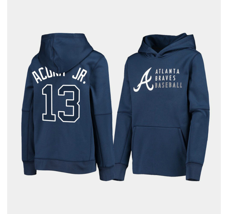 - Official Braves No. 13 Ronald Acuna Jr Authentic Collection Performance Navy Hoodie