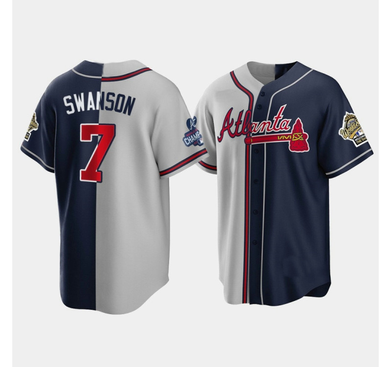 - Official Men's Braves 1995 Throwback Split Dansby Swanson Gray Navy 2021 World Series Champions Jersey