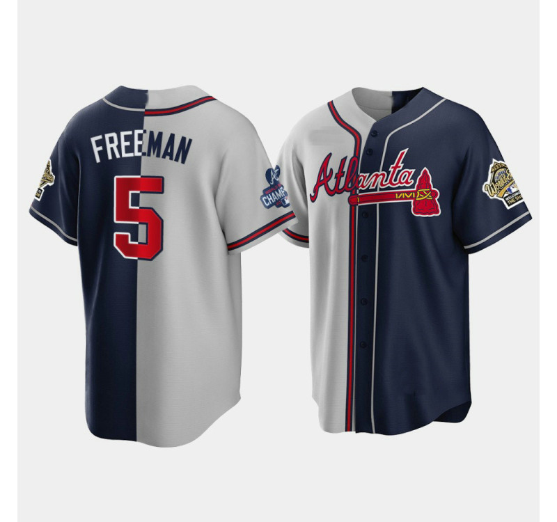 - Official Men's Braves 1995 Throwback Split Freddie Freeman Gray Navy 2021 World Series Champions Jersey