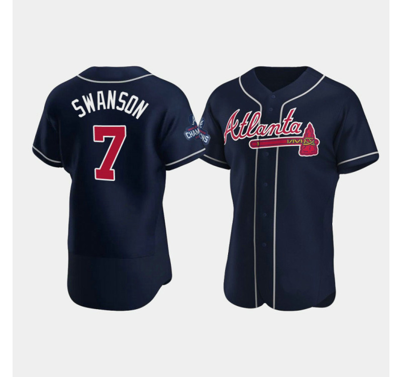 Official Men's Atlanta Braves Authentic Dansby Swanson Navy 2021 World Series Champions Jersey