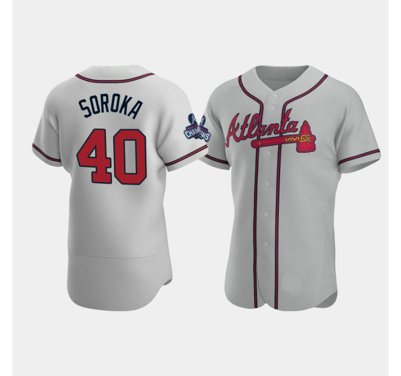 - Official Men's Braves Authentic Mike Soroka Gray 2021 World Series Champions Jersey