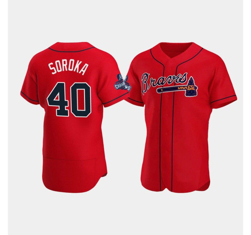 - Official Men's Braves Authentic Mike Soroka Red 2021 World Series Champions Jersey