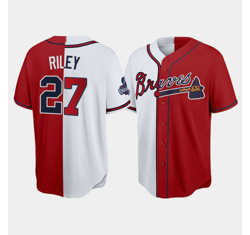- Official Men's Braves Split Austin Riley Red White 2021 World Series Champions Jersey