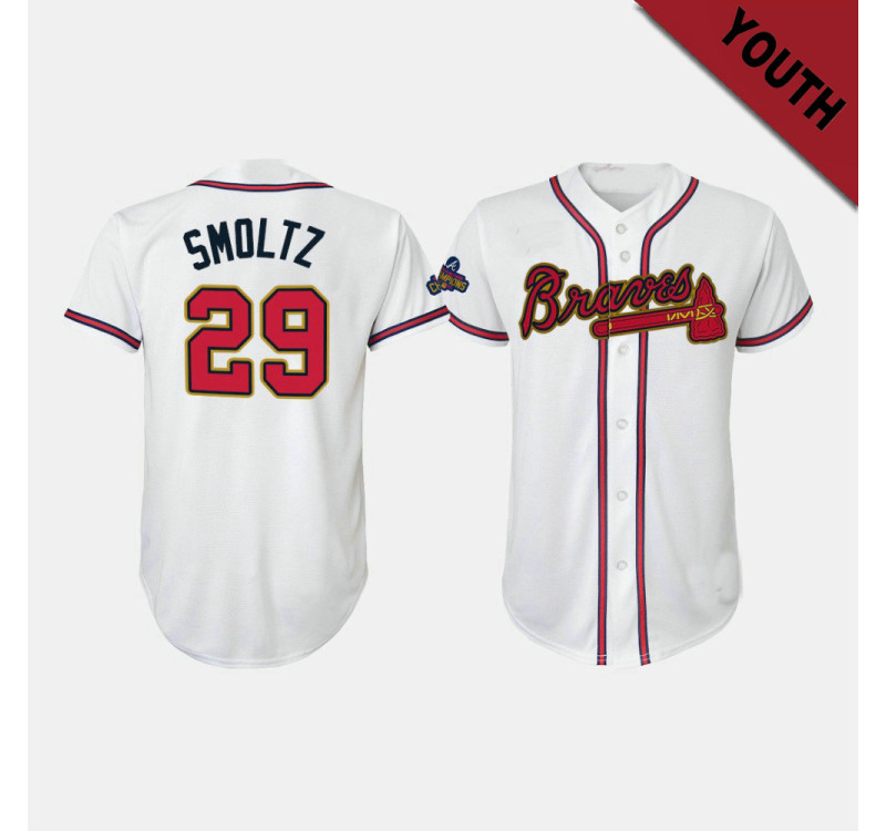 - Kid's Braves #29 John Smoltz Replica 2022 Gold Program Jersey - White